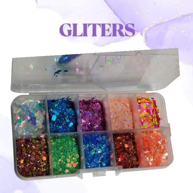 Caja de glitter y brillos x 10