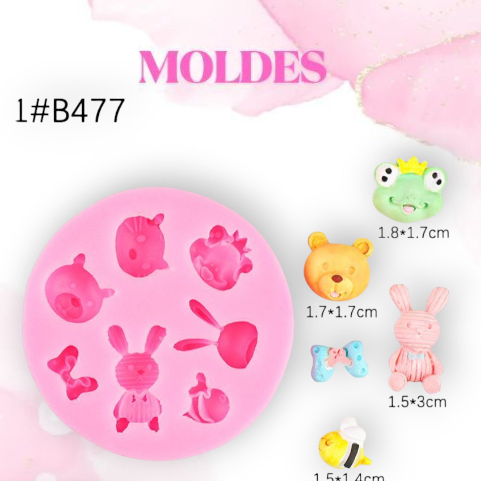 MOLDE SILICONA 6 ANIMALES Y MOÑO (Dijes)